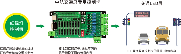 本產(chǎn)品為交通信號屏專用控制卡,根據(jù)不同的紅綠燈信號(左轉(zhuǎn)紅、左轉(zhuǎn)綠、直行紅、直行綠)智能的切換不同的顯示內(nèi)容。顯示內(nèi)容由用戶自主設(shè)置。