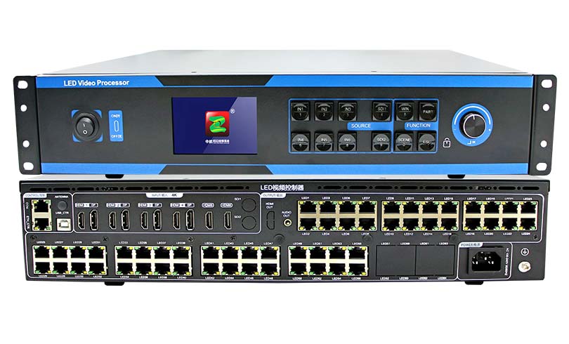 ZH-Z56 4K二合一視頻處理器是中航軟件為滿足LED大屏安裝方便精心打造的一款產(chǎn)品。支持HDMI、DP等高清信號(hào)四畫面任意漫游輸入;最大可接收4096*2160@60Hz像素的高清數(shù)字信號(hào),支持56路千兆網(wǎng)口輸出,單機(jī)帶載支持最寬16384像素,或最高8192像素的大屏。采用全新通信架構(gòu),高刷新、高亮度、全新灰度掃描引擎,納秒級(jí)同步,惡劣通信狀態(tài)仍能保持通信順暢,讓廣大用戶感受更多彩、更美好的LED世界!