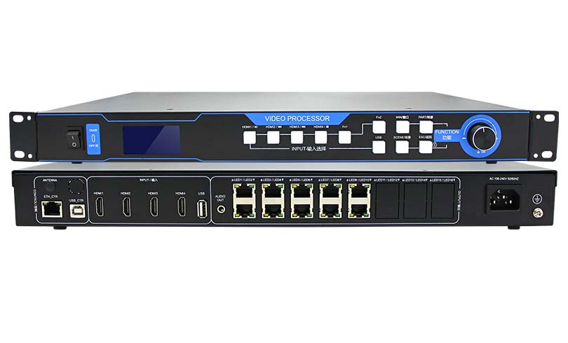 ZH-Z10Q 三畫面視頻處理器視頻處理器是中航軟件為滿足LED大屏安裝方便精心打造的一款產(chǎn)品。支持HDMI/USB高清信號(hào)輸入;最大可接收4096*2160@30Hz像素的高清數(shù)字信號(hào),支持10路千兆網(wǎng)口輸出,單機(jī)帶載支持最寬16384像素,或最高4320像素的大屏。采用全新通信架構(gòu),高刷新、高亮度、全新灰度掃描引擎,納秒級(jí)同步,惡劣通信狀態(tài)仍能保持通信順暢,讓廣大用戶感受更多彩、更美好的LED世界!
