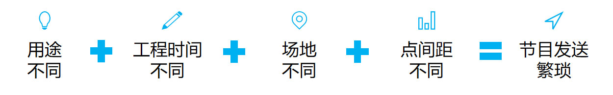 傳統(tǒng)解決方案,根據(jù)每個(gè)屏的分辨率,分別編輯節(jié)目發(fā)送。
