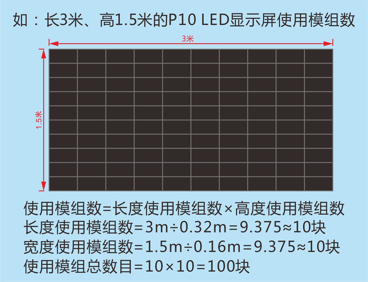 1、計算方法:使用模組數(shù)=總面積÷模組長度÷模組高度