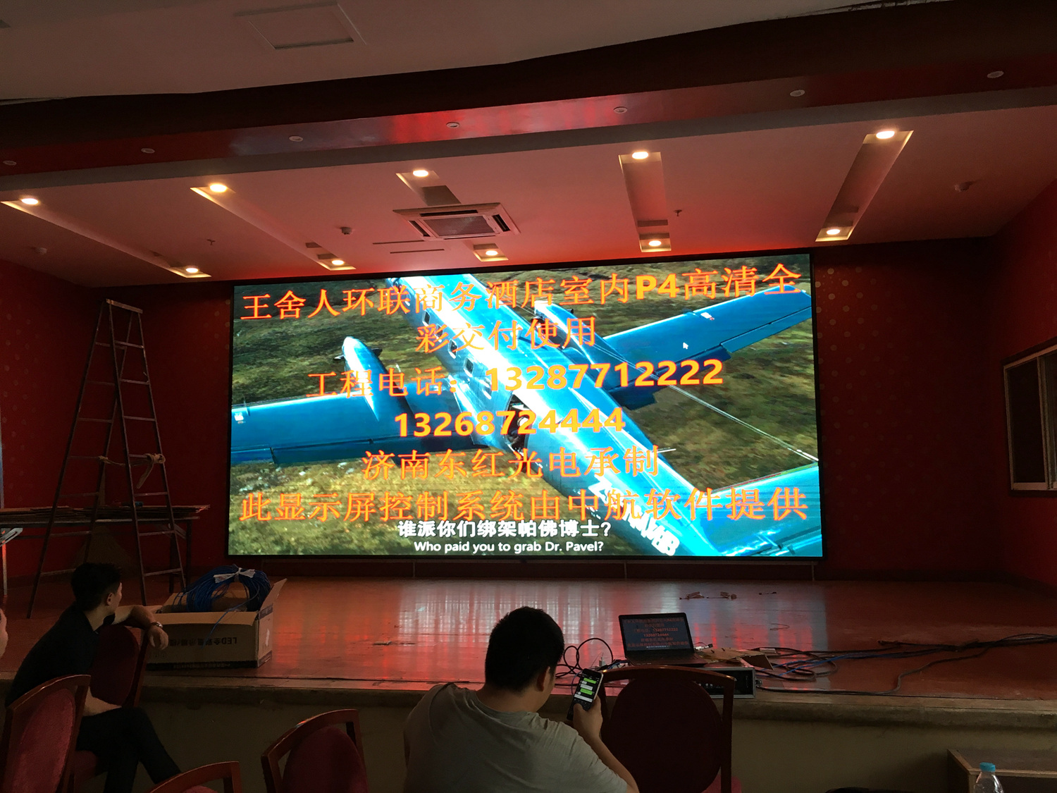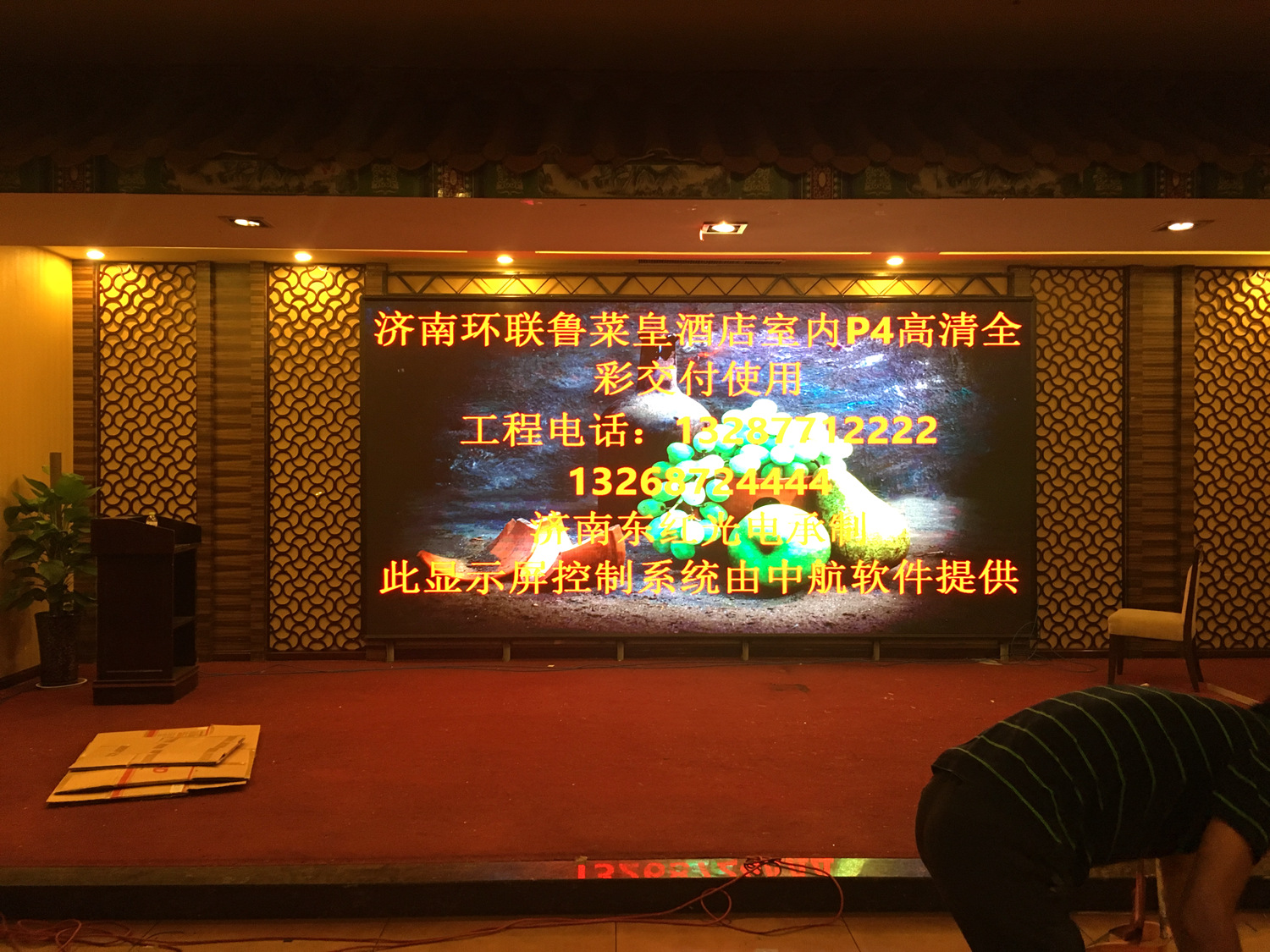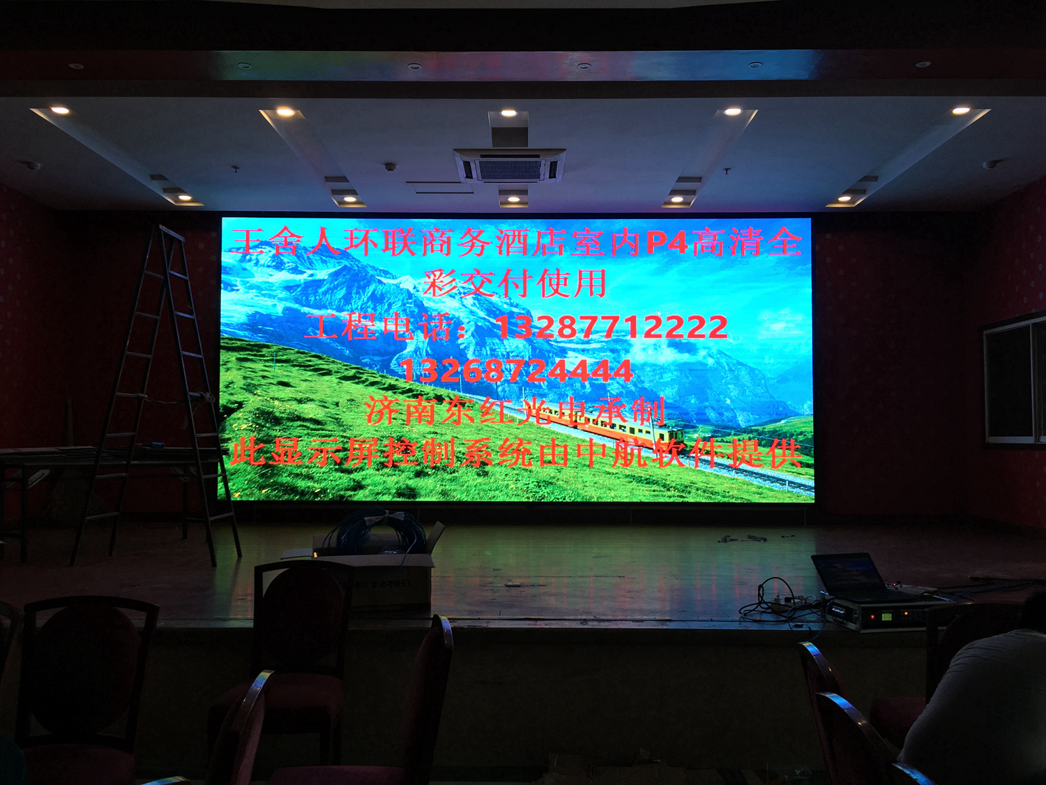 山東省濟南市環(huán)聯(lián)商務(wù)酒店 室內(nèi)P4 ,總點數(shù)1600×768(寬×高)1張發(fā)送卡,10張接收卡完美帶載!單卡最大帶載320×384(寬×高),感謝濟南東紅光電徐總對中航的信任和認(rèn)可,我們會更加努力!中航V5全彩系統(tǒng),讓效果證明實力!