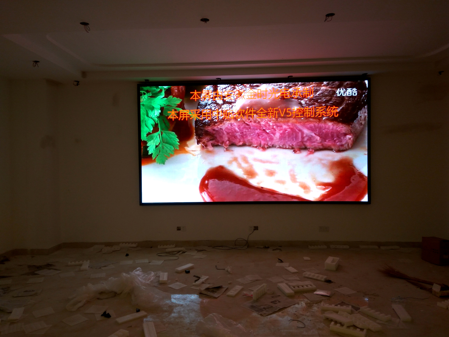 遼寧省鐵嶺市昌圖縣金家鎮(zhèn)某飯店,戶內(nèi)p5單卡帶載256高192寬,1張發(fā)送卡8張接收卡。中航V5全彩系統(tǒng),讓效果證明實力!