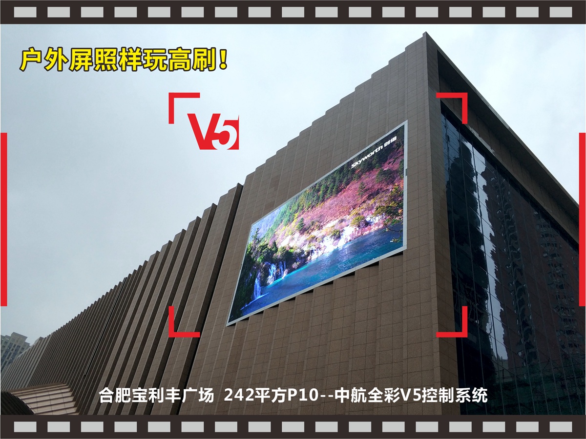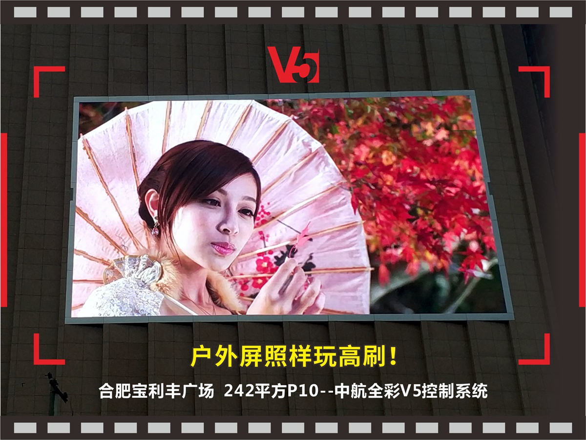 【中航V5精品案例選集】:戶外屏照樣玩高刷!合肥寶利豐廣場(chǎng),242平方P10,112張接收卡,2張發(fā)送卡完美帶載!感謝美碩光電朱總對(duì)中航的支持和信任,我們會(huì)更加努力做的更好!