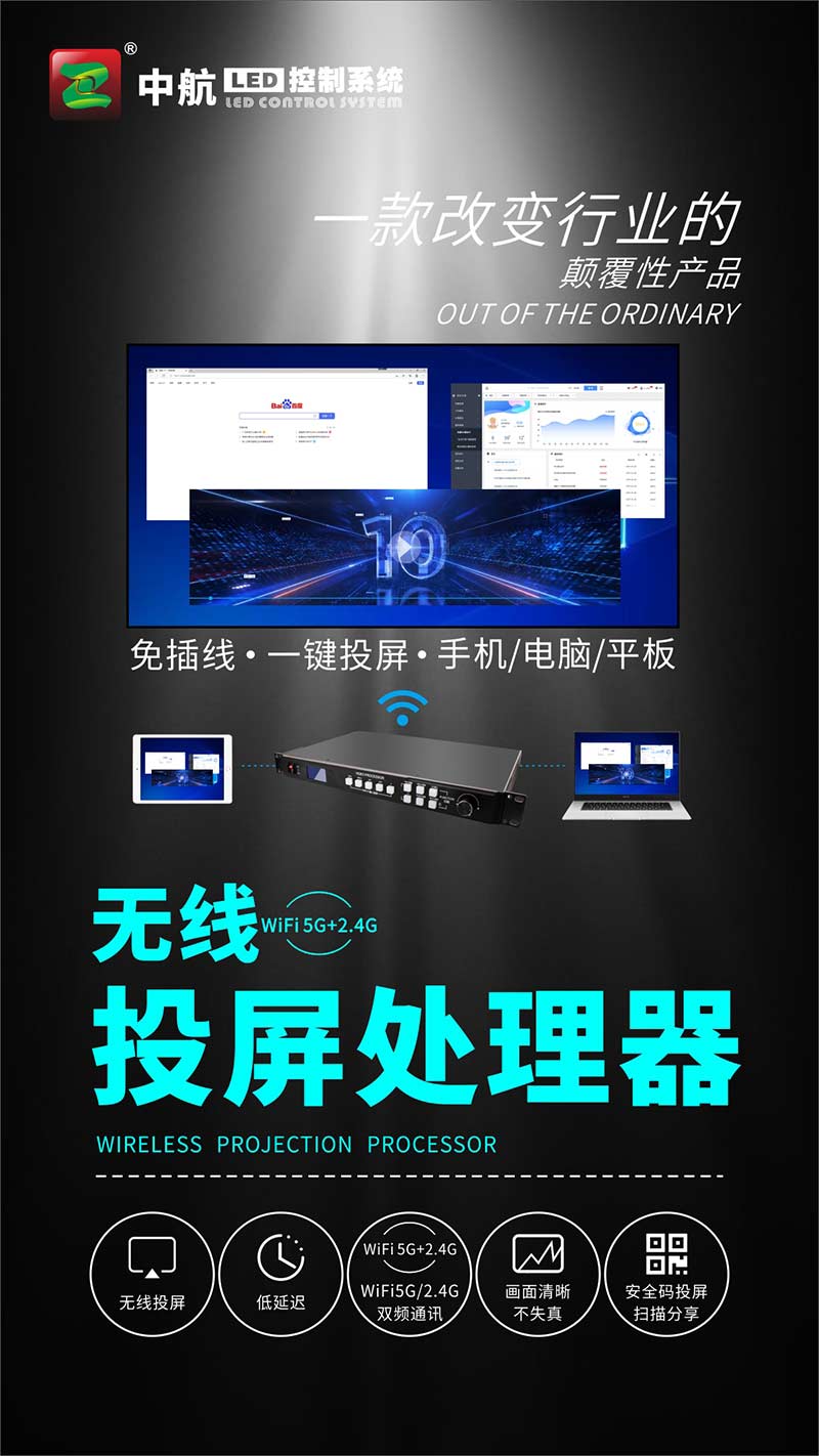 產(chǎn)品介紹中航無線投屏處理器是中航專為會議室、教室等LED顯示屏開發(fā)的一款無線投屏互動系統(tǒng),可直接連接LED大屏幕,同時支持HDMI高清輸出連接液晶屏或會議平板等??梢园蜒葜v者手機(jī)、電腦的音視頻內(nèi)容無線實(shí)時傳輸給顯示屏,聲音輸出給音響??蓪?shí)現(xiàn)觀眾與演講者之間,或者觀眾與觀眾之間信息的無線實(shí)時交互。