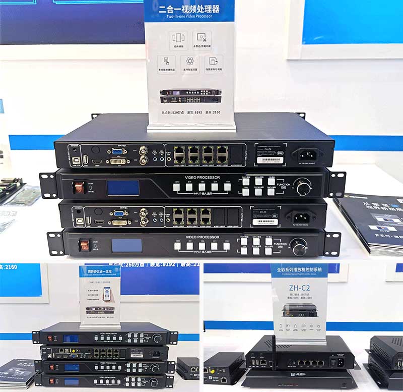 此外,中航還向大家展示了二合一視頻處理器,同異步三合一主控,全彩系列播放機(jī)控制系統(tǒng)等多系列產(chǎn)品。