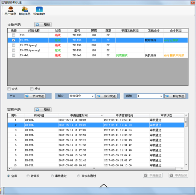 設(shè)備上線后會顯示藍色,且發(fā)送節(jié)目只能給上線設(shè)備。